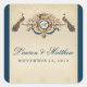 Dois pavões elegantes são tocados em um belo design ornamentado de blues, ouro e castanhos. Sotaque perfeito para o seu casamento, chá ou aniversário do tema do pavão. As cores de destaque do ouro e do azul são profundas e ricas.
