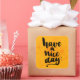 Tenha um bom dia. Caligrafia de tinta preta vetorial para cartas, impressões e conteúdo de mídia social, design de moda. Citação positiva, inscrição sobre fundo amarelo-claro. | Bigstock® - Todos os direitos reservados.
