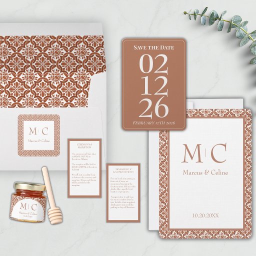 Terracotta Queimou Favores De Casamento De Azulejo Laranja. Criar favores de casamento personalizados para um casamento de outono, rústico ou ao ar livre usando uma modelo personalizada para enviar aos convidados. Decoração de casamento do orçamento DIY com impressão de qualidade e mel de verdade.