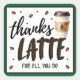 Adesivo Quadrado Thanks a Latte Teacher Appreciation Gift