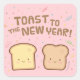 Venha comemorar o Ano Novo com este design de humor de trocadilho fofo! O manual casual, como o texto, diz: "Toast to the New Year!" Em vez de champanhe e levantar seus óculos, que tal torradas de pão sorridente com confete colorido em formas de círculos, estrelas e quadrados voando ao redor no fundo. Coloque um sorriso e aplauda no rosto do receptor, especialmente as meninas. A cor de fundo pode ser alterada para a cor escolhida.