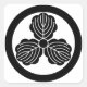 Em japonês, esta é uma KAMON chamada "Maru-ni mitsu kashiwa". Diz-se que as folhas de carvalho foram usadas como bandejas quando a comida foi oferecida aos deuses.