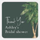 Tropical verde script palmeira chá de noiva obrigado adesivo com ilustração de palmeira exótica aquarela e tipografia de pincel elegante. Perfeito para festa de chá de noiva de primavera verão.
