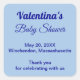 Baby shower square stickers for moms-to-be who see blue as a symbol of calmness, peace and trust. These are also suitable for those who see blue as a color that evokes a sense of serenity and innocence. A great choice also for those who prefer a text based design for readability. The texts are center aligned and the fonts used are calligraphy, script and sans serif. Calligraphy and script fonts are used to enhance the design while the sans serif font is used to enhance readability. Customize it by typing the celebrant's name, date and location. You can also change the contents or wordings in the design tool including the font style, font color and background color. Please check the appearance after typing texts. If the appearance is pleasing to you, you can place your order now. If you need to resize or reposition the texts, please adjust in the design tool. Stickers to add a personal touch and enhance your baby shower favors. To the couple, best wishes as you prepare to welcome the newest member of your family. Wishing you both endless joy and love. Congratulations on your sweet blessing!