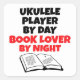 Este adesivo com a citação "Ukulele Player by Day Book Lover by Night" é perfeito para qualquer Ukulele Player que adora ler.