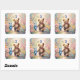 Adesivo Quadrado Urso de pelúcia e coelho num jardim de pastel