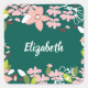 Adesivo Quadrado Verde com Flores Rosa Personalizadas