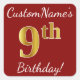 Adesivo Quadrado Vermelho, Faux Dourado 9º Aniversário + Vinheta de