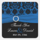 Este cobalto azul e casamento tema damasco preto de 1,5" favorece o obrigado que você cola ou sela de envelope tem uma fita FAUX azul e broche de joia que corresponde ao convite de casamento mostrado abaixo. Você pode mudar o texto para dizer o que quiser, e também pode mudar o tamanho e/ou a forma do adesivo. Se você precisar de outros itens correspondentes neste design, envie seu pedido por e-mail para niteowlstudio@gmail.com.