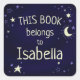 Este adesivo apresenta um design celeste com luas e estrelas sobre fundo azul da meia-noite. Isso seria perfeito para qualquer biblioteca ou presente para alguém que gosta de ler.