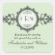 Um adesivo que toma influência da era Art Deco. Uma banda ornamentado, parecida com um relógio vitoriano, apresenta um medalhão segurando o monograma do casal. Adicione ou reduza o espaço entre a primeira e a última iniciais para equilibrar com o monograma central. O fundo verde claro impressão um padrão sutil como uma marca d'água. Um olhar clássico para estabelecer o clima para qualquer casamento. Adicione uma mensagem especial aos seus convidados por baixo. Use como invólucro ou selo de embalagem, um favor divertido ou use-os para fechar bolsas favoráveis. Disponível em cores alternativas com produtos correspondentes. com.