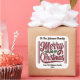 Esta vibrante vinheta quadrada captura o espírito alegre do Natal com a sua ousada letra de "Feliz Natal". Matizes brilhantes de vermelho e verde adornam o design, fazer um sotaque perfeito para cartões de natal, embrulho de presente e decorações festivas.