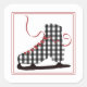 Adesivo Quadrado Vinheta de Natal de Skate de gelo preto e branco