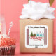 Um adesivo quadrado vibrante e colorido dá vida ao espírito natalício com a saudação alegre Feliz Natal. Adorada com duas árvores de Natal decoradas e estrelas festivas, esta design é perfeita para adicionar alegria a qualquer celebração de Natal.