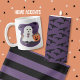 Os adesivos roxos do Dia das Bruxas com um adorável fantasma bebendo uma bebida fria. Personalize-os com o seu próprio texto e o nome da sua família. © ArianeC Ilustrações — Todos os direitos reservados