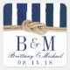 Este adesivo náutico de casamento personalizado apresenta faixas de marinho e de aquarela branca com um nó de corda náutica. Personalize com suas iniciais, nomes e data de casamento. Coordena-se perfeitamente com nosso convite de casamento e papel de carta correspondente do Náutico Knots.