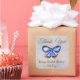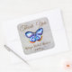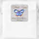 Belíssima borboleta azul de aquarela e fundo canvas, elegantes adesivos quadrados para chá de panela