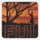 Vintage Fiji Cruise poster de viagens criado usando uma foto original. A design apresenta um guerreiro fijiano parado debaixo de uma árvore pandanus no pôr do sol segurando um Clube de Guerra Fijian com o oceano do Pacífico Sul ao fundo.