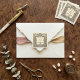 Mark the union of two hearts with this stunning wedding announcement sticker, showcasing a magnificent medieval arch framing a proud lion crest. The design is meticulously detailed, with ornate foliage and architectural elements that transport you to a realm of romantic history. The rich black and cream tones lend an air of classic elegance, making it a perfect accent for any wedding theme seeking a touch of regal splendor. These versatile stickers can be used to seal envelopes, embellish wedding favors, or add a personalized flourish to your ceremony programs. Let this sticker be a symbol of your strength, commitment, and the grand adventure of marriage that lies ahead.