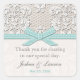 Bonito e semelhante a cadela antiga, olha vintage lace vintage, etiqueta de favorito de casamento com uma deguice impressa, aqua e fita de contraste azul mint parecem design e um sutil coco cremoso de fundo branco úmido. Projetado por Chrissy H. Studios, LLC. Todos os Direitos Reservados.