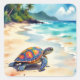 Adesivo Quadrado Watercolor Sea Turtle On a Beach