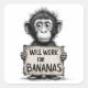 Adesivo Quadrado Will Work for Bananas - Humorous Monkey Sketch
