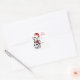 Uma linda zebra de desenho vestindo um chapéu de Natal vermelho e um arco vermelho em volta do pescoço. Uma etiqueta de presente festiva.