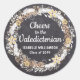 Uma bela coroa floral branca, com sotaques dourados e castanhos, arma este adesivo de quadro. A saudação está escrita em um bonito roteiro branco. O nome do formando e o ano de classe estão abaixo.