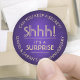 Adicione um toque personalizado de na moda a uma festa surpresa de aniversário com elegante roxo personalizado e adesivos de favoritos dourados / selos de envelopes. Toda a redação nesta modelo é simples de personalizar ou apagar, incluindo a mensagem que diz "Shhh! É uma SURPRESA." Como opção, o texto curvado pode ser um nome e endereço para uso como etiquetas de endereço de retorno redondo moderno da tendência. A design apresenta a tipografia clássica vintage art deco e um fundo vermelho metálico escovado roxo. Observe que o ouro é impresso a cor, não a folha metálica. Feliz Aniversário e parabéns sobre a celebração do marco!
