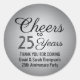 Adicione um toque final personalizado a notas de agradecimento de aniversário de casamento ou lembranças com esses adesivos redondos pretos e em prata falsa / selos de envelope. Todo o texto é simples de personalizar ou excluir. Este modelo é configurado para um aniversário de 25 anos, mas pode ser facilmente alterado para outro ano ou evento, como um aniversário. O design apresenta um fundo de aço inoxidável escovado falso prateado, "Brindamos a 25 anos" em caligrafia estilosa e uma mensagem personalizável com tipografia minimalista moderna na parte inferior.