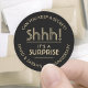 Adicione um toque elegante personalizado para surpreender convites de festas, decorações e favores de 50 anos de ouro, com esses adesivos modernos de preto e ouro / selos de envelopes. Design apresenta uma deco de arte tradicional inspirada na tipografia com mensagem personalizável que diz "Shhh! É uma SURPRESA." Observe que o ouro é impresso a cor, não a folha metálica. Como opção, a tipografia curvada por na moda pode ser um nome e endereço para uso como etiquetas de endereço de volta redonda quic moderna.