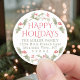 Adicione um toque elegante de acabamento às placas de cartões de natal ou aos convites com essas etiquetas de endereço de retorno de cor d'água redonda artística. Todo o texto é simples de personalizar "Feriados Felizes" para qualquer saudação, como Feliz Natal, Feliz ano novo, Saudações do Seasons, nome da família ou qualquer mensagem personalizada de sua escolha. Design apresenta galhos e bagas com coloração aquática e tipografia de script de caligrafia na moda num fundo branco simples.