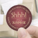 Adicione um toque personalizado na moda a uma festa de aniversário surpresa com elegante burgundy personalizado e adesivos de ouro/selos de envelopes. Toda a redação nesta modelo é simples de personalizar ou apagar, incluindo a mensagem que diz "Shhh! É uma SURPRESA." Como opção, o texto curvado pode ser um nome e endereço para uso como etiquetas de endereço de retorno redondo moderno da tendência. A design apresenta uma tipografia clássica de arte de vintage e um fundo vermelho-piscado metálico falso, que é perfeito para um aniversário de 40 anos de casamento rubi. Observe que o ouro é impresso a cor, não a folha metálica. Feliz Aniversário e parabéns sobre a celebração do marco!