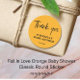 Esta bengala redonda maravilhosamente desenhada captura o calor e a beleza da temporada de outono, apresentando um fundo cor de laranja girassol. O adesivo mostra somente um fundo colorido adornado com fonte escrita à mão usada para OBRIGAR VOCÊ, evocando a sensação acolhedora e acolhedora do outono. A brilhante coloração de girassol adiciona um toque alegre, fazer este adesivo perfeito para um chá de fraldas de outono. O texto é apresentado num tipo de letra delicioso e fácil de ler, melhorando o tema natural do autocolante. Personalize o adesivo com seu nome, nome da família, data do evento e outros detalhes essenciais, garantindo que ele reflita perfeitamente sua celebração.