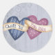 "Quilt 'até você WIlt!" Folkart quilters design: Dois corações coloridos com a citação escrita sobre os pergaminhos.