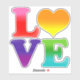 Um simples, mas ousado, design de texto de amor acentuado com cores cardíacas e inclinadas do arco-íris. Mostre algum amor a qualquer hora! Mostrado aqui em um adesivo personalizável. Disponível em vários tamanhos e dois acabamentos. Excelente para colar em laptop, garrafas de água, seu carro, livros de recortes e muito mais! São resistentes à água e reutilizáveis.