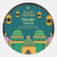 Eid Mubarak e Ramadã celebram o ouro árabe "Labbaik ya Rasool" caligrafia e padrão islâmico, mesquita colorida desenhada pela mão, lanternas islâmicas sobre fundo negro. Você pode usar este adesivo para comemorações do Ramadão, Eid al fitr e Eid al adha e muito mais. Você pode mudar facilmente esta cor de fundo e pode alterar o texto ou removê-lo clicando nas ferramentas de personalização do Zazzle.
