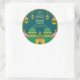 Eid Mubarak e Ramadã celebram o ouro árabe "Labbaik ya Rasool" caligrafia e padrão islâmico, mesquita colorida desenhada à mão, lanternas islâmicas em fundo verde. Você pode usar este adesivo para comemorações do Ramadão, Eid al fitr e Eid al adha e muito mais. Você pode mudar facilmente esta cor de fundo e pode alterar o texto ou removê-lo clicando nas ferramentas de personalização do Zazzle.