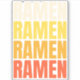 Simples design de texto colorido com o texto "Ramen, Ramen, Ramen, Ramen" em cor bege, amarela, laranja e vermelha