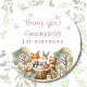 Celebre o primeiro aniversario da sua menina com este adorável e personalizado obrigado de animais da floresta que você escolhe! Apresentando um urso bonito, raposa, esquilo e coelho tendo uma festa na floresta, este design é cheio de charme. Os animais se reúnem em torno de uma mesa de toco de árvore, aproveitando bolos e bebidas deliciosos, enquanto árvores verdes somam à atmosfera festiva. Colocado contra um fundo branco nítido, este doce obrigado que você cola é perfeito para favoritos para festas e irá adicionar um toque especial à primeira celebração de festa de aniversário de sua garota. Expresse sua gratidão em estilo com essa bonitinha e memorável manutenção!