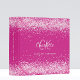Um fundo cor-de-rosa com faíscas elegantes e balões brancos. Personalize e adicione um nome e uma idade. Cartas brancas.