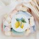 Sua garotinha está celebrando seu próprio primeiro aniversario? Celebre em estilo com nossos adesivos de aniversário de cor d'água Lemon Amalfi, absolutamente adoráveis, perfeitos para selos de envelopes, favores, e muito mais. Esta design combina a elegância clássica dos elementos aquosos com os rabiscos de mão branca, sempre trendy. Com limões de cor aquosa, listras azuis e arcos.