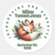 Celebre a chegada da sua pequena senhora com estes adesivos, que apresentam uma imagem rústica e ilustrativa de um adorável filhote de raposa sonhando alegremente numa cama de folhas verdes e verdes. Personalize com o nome do bebê, data de nascimento (ou evento) e mensagem. Design © W.H. Sim. Mais informações em zazzle.com/word2art