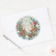 Uma bela coroa de inverno com flores vermelhas, folhagem e bagas e duas raposas no centro. Edite ou exclua o texto conforme necessário.