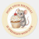 Uma ilustração doce de um ratinho fofo carregando um cupcake de baunilha com confeitos e uma cereja no topo! Esperamos que seu aniversário seja polvilhado com amor! Fofo para selos de envelope de aniversário ou sacolas de favor. Você pode editar o texto na área de personalização.