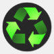 Símbolo de reciclagem em verde de dois tons sobre um fundo preto.