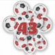 This fun soccer themed removable sticker can be personalized with the athlete's jersey number or monogram and features the image of multiple varied size red, black and white soccer balls - by katz_d_zynes