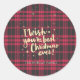 Dourado Feliz Natal em vermelho e preto em fundo de xadrez de búfalo.