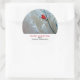 Autocolantes com fotografia cênica com um cardeal vermelho brilhante. Contrastado com um pano de fundo de inverno externo com neve suavemente caindo.