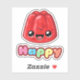 This design features a cute red jelly from the popular Happy Jump game, along with the word "Happy" in the style of the game logo. Yay!
